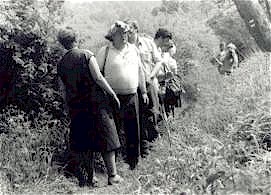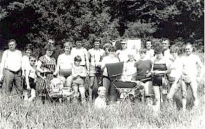 Burgruine Hasištejn hat um 7.00 Uhr noch nicht geöffnet - der Wärter frühstückt hinterm Tor (im Schlafanzug?) Autocampingplatz an der Eger – schönes Sommerwetter – schöner Umtrunk!*Die Wanderung beginnt über die Klapperbrücke bergauf. Wegerkundigung erfolgt durch Spähtrupps. Angeblich ist gutes Durchkommen mit den Kinderwagen! Einer muss zurück und ein Autoabschleppseil holen. Der Weg zur Ruine ist sehr steil. Die Kinderwagen werden mehr getragen als geschoben. Die Sonne brennt heiß. Manche tragen große Blätter auf dem Kopf. Wir rasten in herrlicher Natur. |