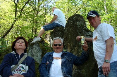 Auf der Aussichtsplattform mit herrlichem Weitblick in die wunderschöne Natur können wir unsere Rast einlegen und uns stärken. Dann schaffen wir den zweiten Teil der Wanderung ohne Mühe. Am Steinbruch vorbei sind wir ganz schnell wieder im Kurpark von Konstantinsbad, wo eine Theater-Uraufführung in Erinnerung an die 24 bisherigen Reisen auf der Freilichtbühne stattfindet. Es ist total zum Lachen. Applaus Applaus !! |