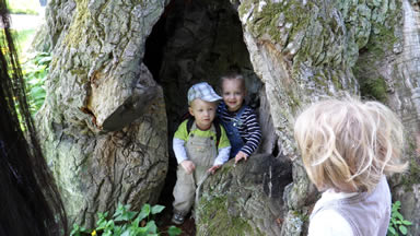 Alle Kinder dürfen in sie hineinklettern. Unter der größten Eiche gibt es ein Gruppenfoto. |