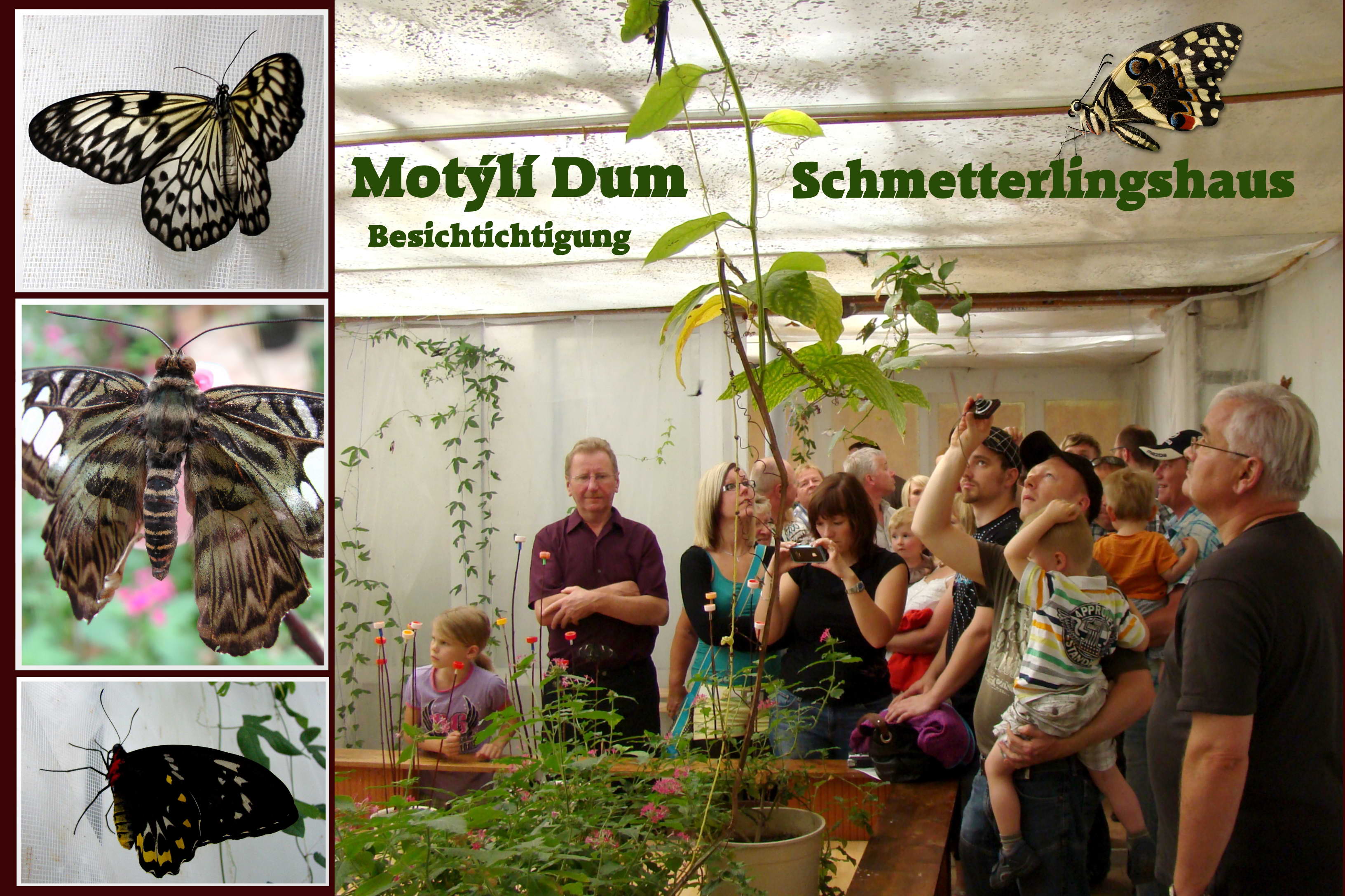 Kurz vor Franzensbad biegen wir nach der AGIP Tankstelle rechts zum Motýlí Dům – Schmetterlingshaus - ab. Im Glashaus mit dem tropischen Klima bewundern wir die fliegenden exotischen Schönheiten |