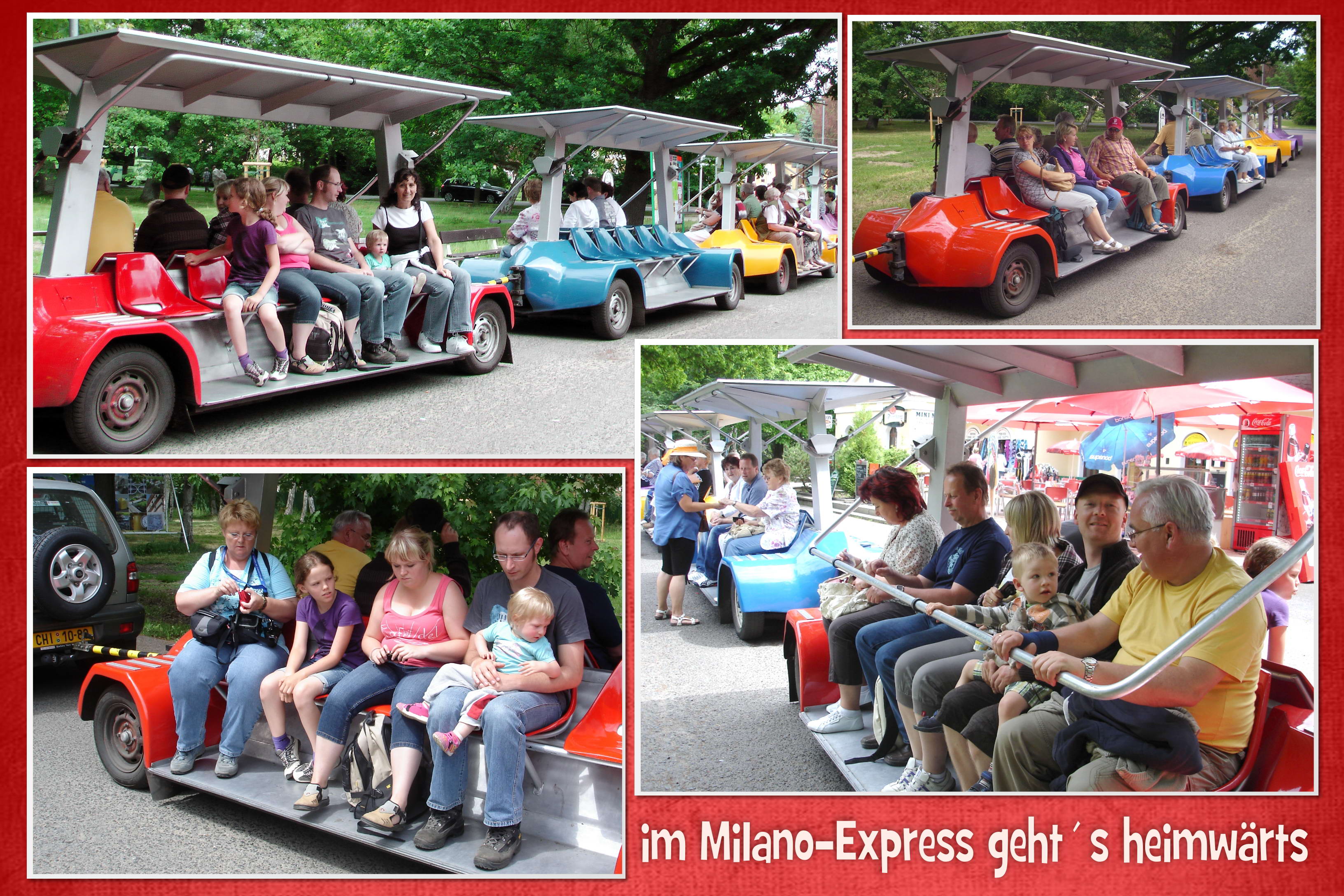 Bergab geht’s zurück durch den Kurpark zum Milano-Express, der uns (hoffentlich alle!) zum Waldpark Amerika bringt. Hier können wir den Minizoo bestaunen und die Kinder können sich an verschiedenen Spielgeräten austoben. |